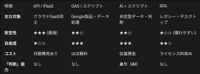 自動化の手段は「どれが優れているか」ではなく、「対象となるシステムの性質」で決まります。